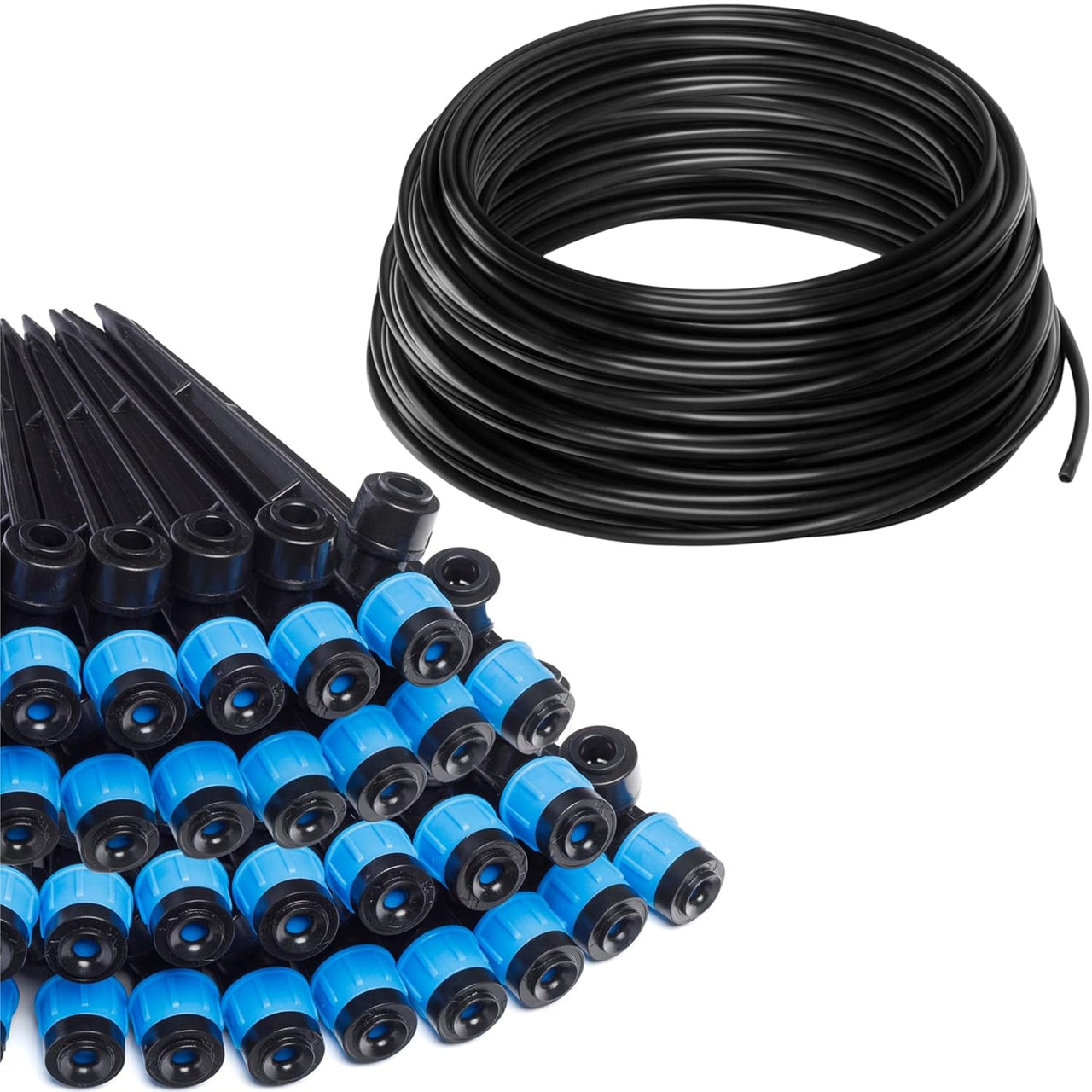 The kit includes 30 adjustable drip emitters, allowing you to efficiently hydrate up to 30 individual plants—or more if emitters are shared between smaller pots
