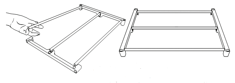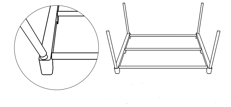 - Attach 4 zip ties (E). One at each corner of the side rail (A);