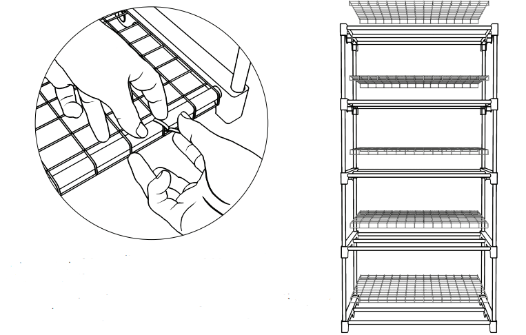 STEP 4: ADDING THE WIRE SHELVES AND SECURING ZIP TIES