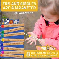 Set of 8 Smores Sticks with Animals Engraved Handles for Kids from Carpathen